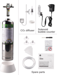 6. Il set completo includerà un diffusore di CO2, un sacchetto di pezzi di ricambio per la manutenzione futura, un manuale utente se necessario (la bottiglia ha un adesivo con le istruzioni)